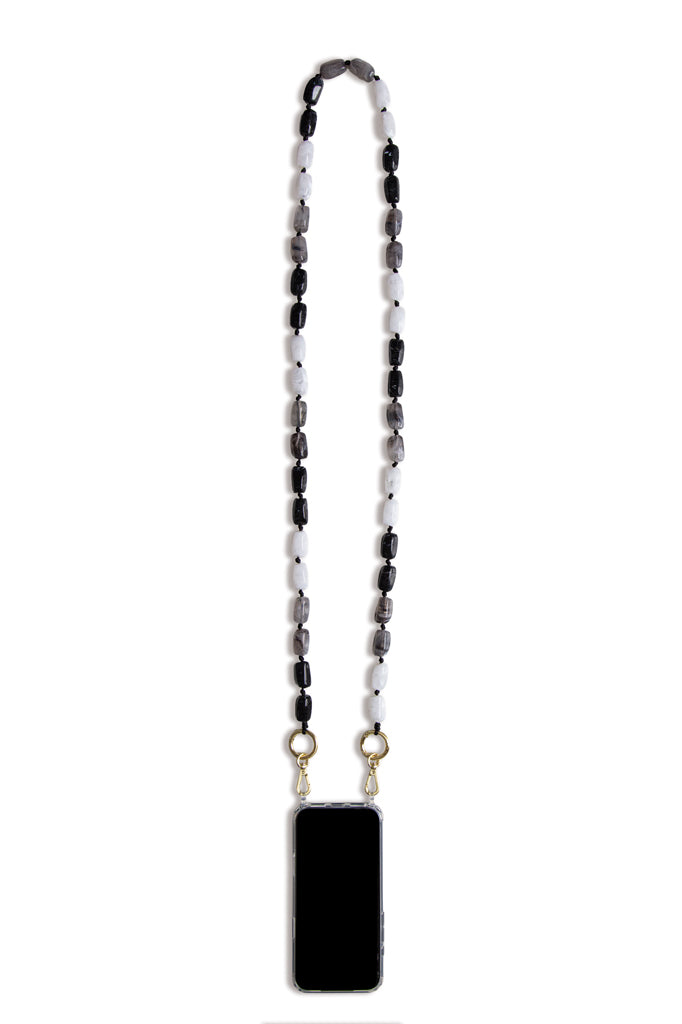 The Mila Onyx chain features a striking mix of white, grey and black gem-style beads, creating a sleek and modern look that complements any outfit. Turn your phone into a chic accessory and carry it everywhere, hands-free, with our crossbody phone chains. Lightweight, polished and effortlessly stylish.
